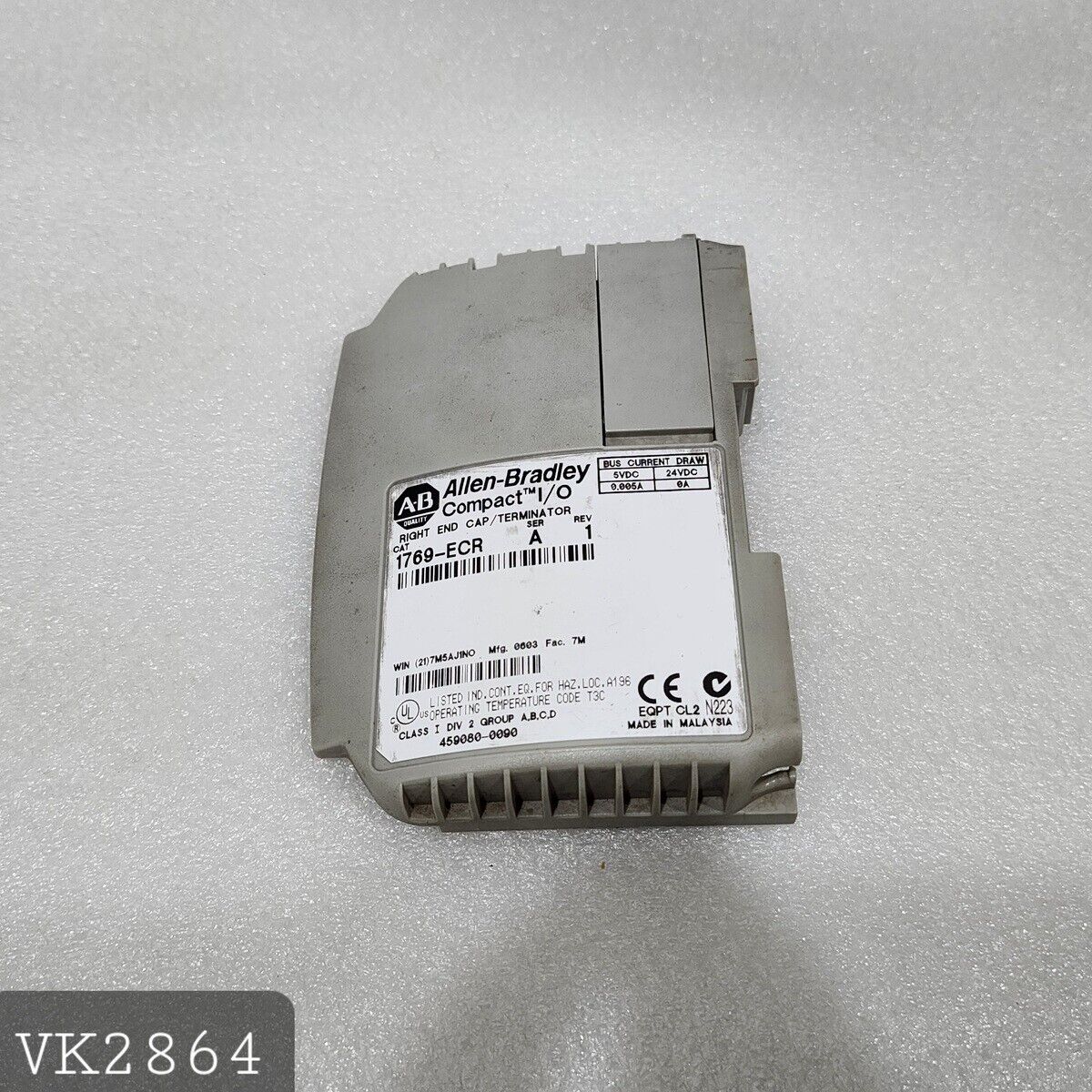 Product Detail:ALLEN BRADLEY CAT 1769-ECR SER A RIGHT END CAP TERMINATORCAT NO: 1769-ECRSERIES: AREVISION: 1