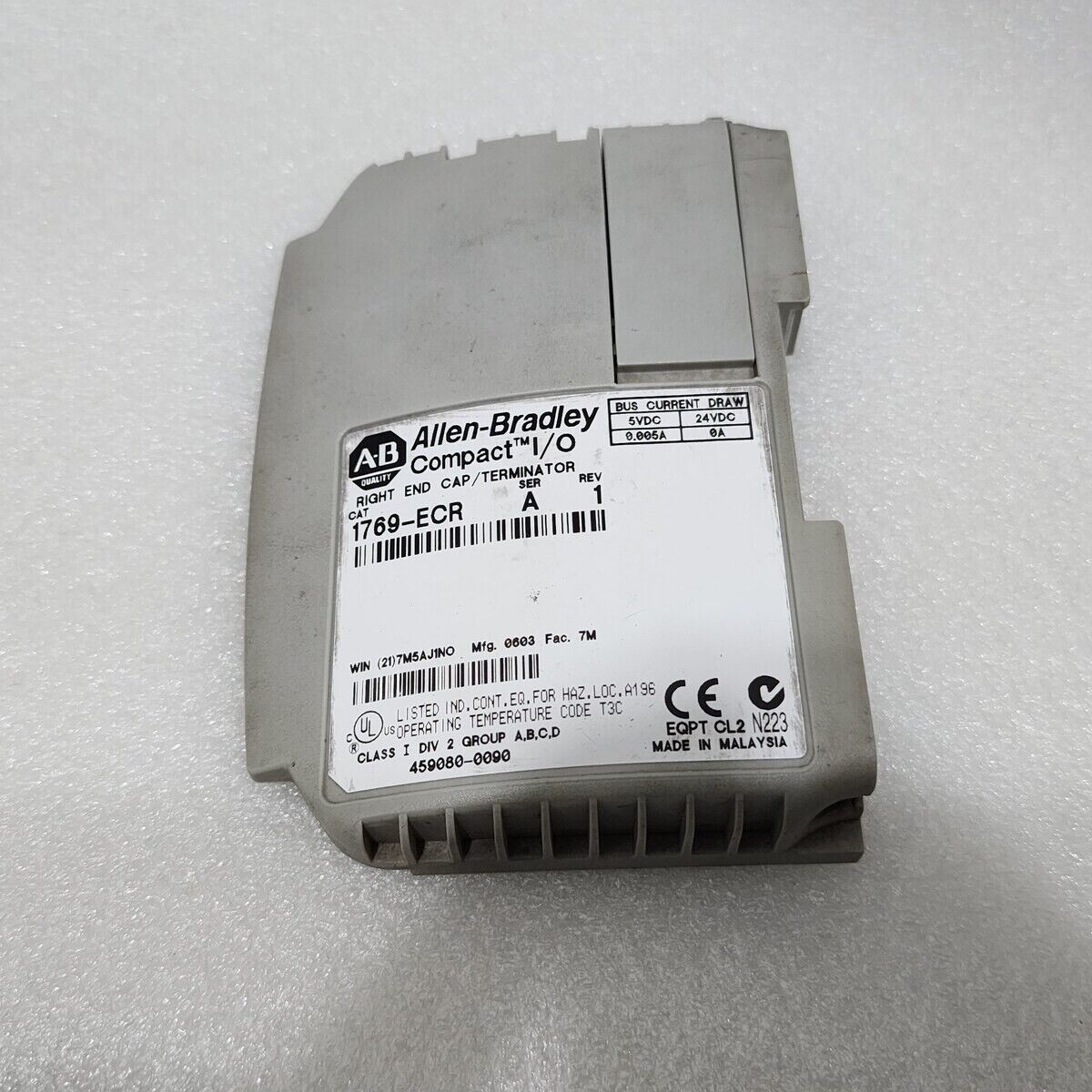 We are pleased to offer ALLEN BRADLEY CAT 1769-ECR SER A RIGHT END CAP TERMINATOR