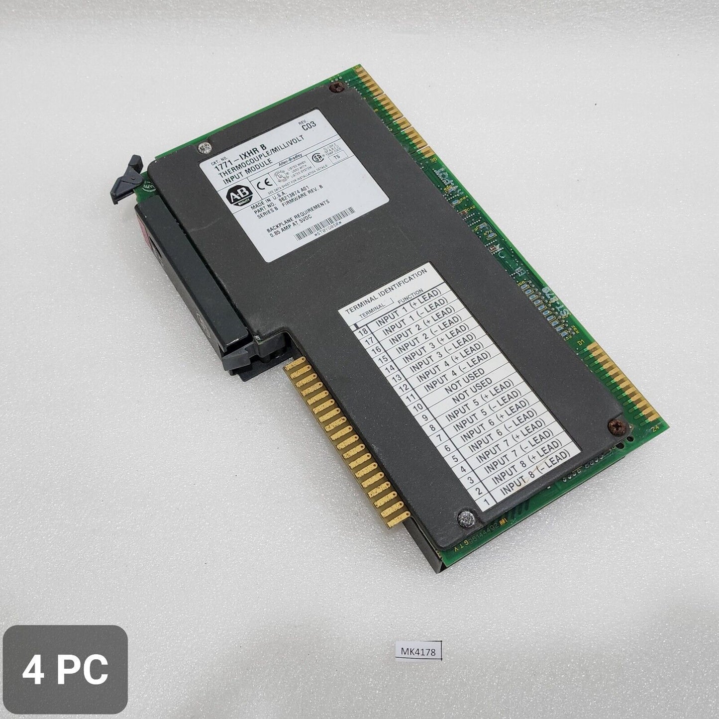 Product Detail:ALLEN BRADLEY CAT 1771-IXHR B THERMOCOUPLE MILLIVOLT INPUT MODULECAT NO: 1771-IXHRSERIES: BREVISION: C03TYPE: THERMOCOUPLE MILLIVOLT INPUT MODULE