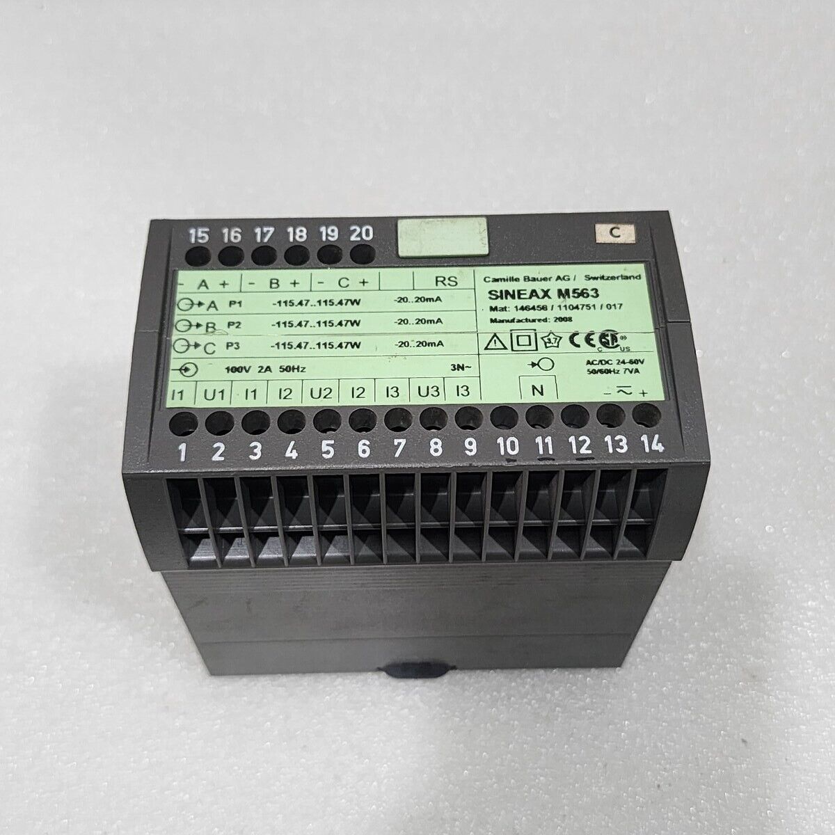 Product Detail:CAMILLE BAUER AG SINEAX M563 MULTI TRANSDUCER 146458 / 1104751 / 017MODEL: SINEAX M563MAT NO: 146458 / 1104751 / 017TYPE: MULTI TRANSDUCERVOLTAGE: 24-60V AC/DC