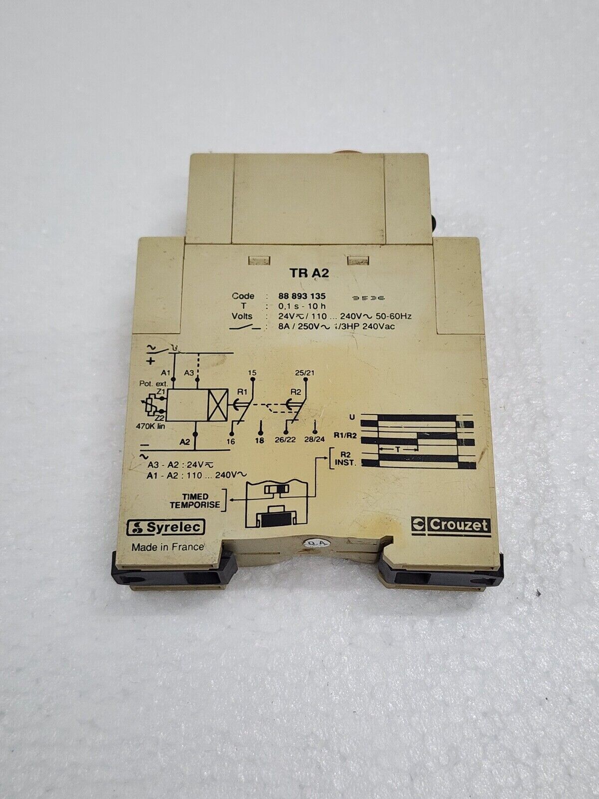 CROUZET SYRELEC TR A2 TIME DELAY RELAY 88 893 135 24VAC-DC/240VAC