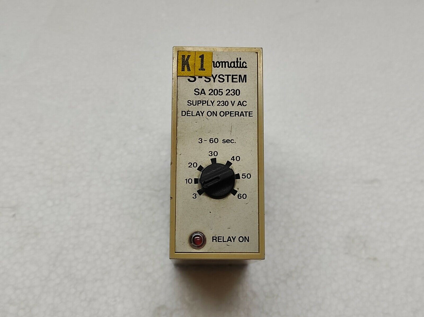 We are pleased to offer ELECTROMATIC S-SYSTEM SA 205 230 SUPPLY 230V AC DELAY ON OPERATE SA205230