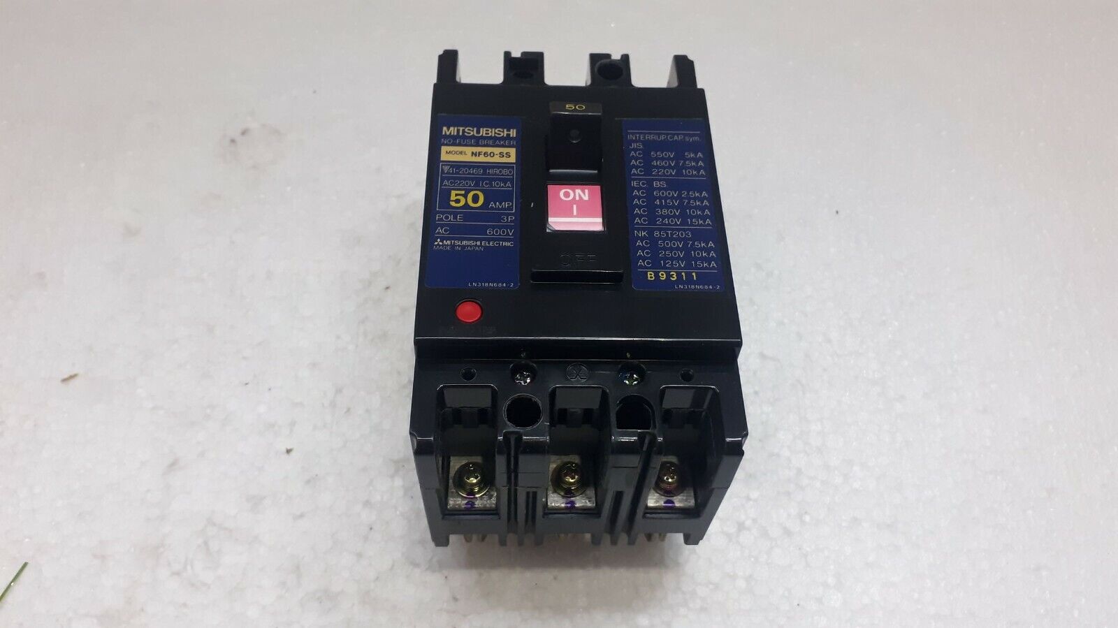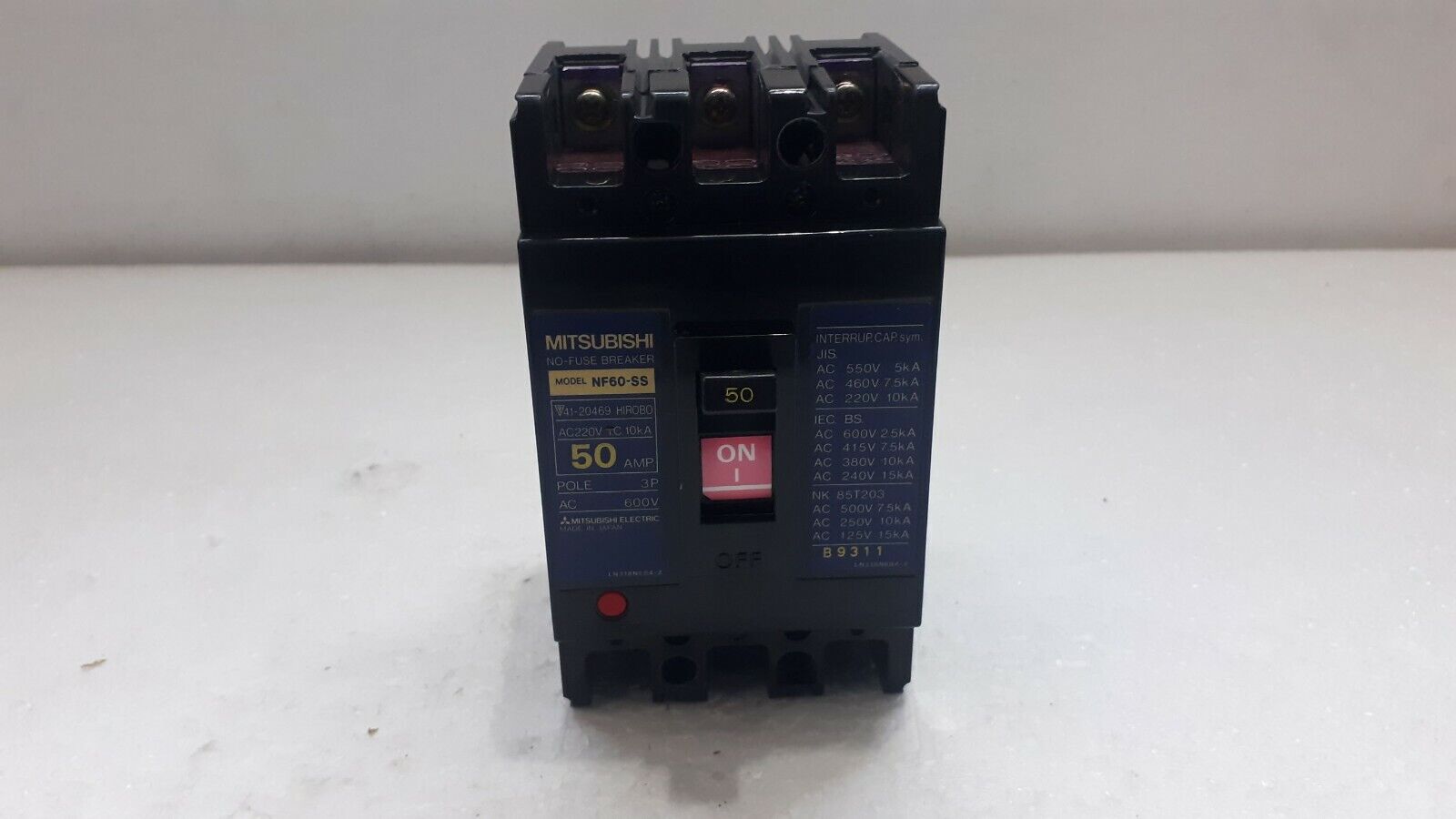 Product Detail:MITSUBISHI NF60-SS NO-FUSE BREAKER 50A 3P 600V NF60SSMODEL: NF60-SSAMP: 50APOLE: 3PVOLTAGE: 600VTYPE: NO-FUSE BREAKERMADE IN JAPAN