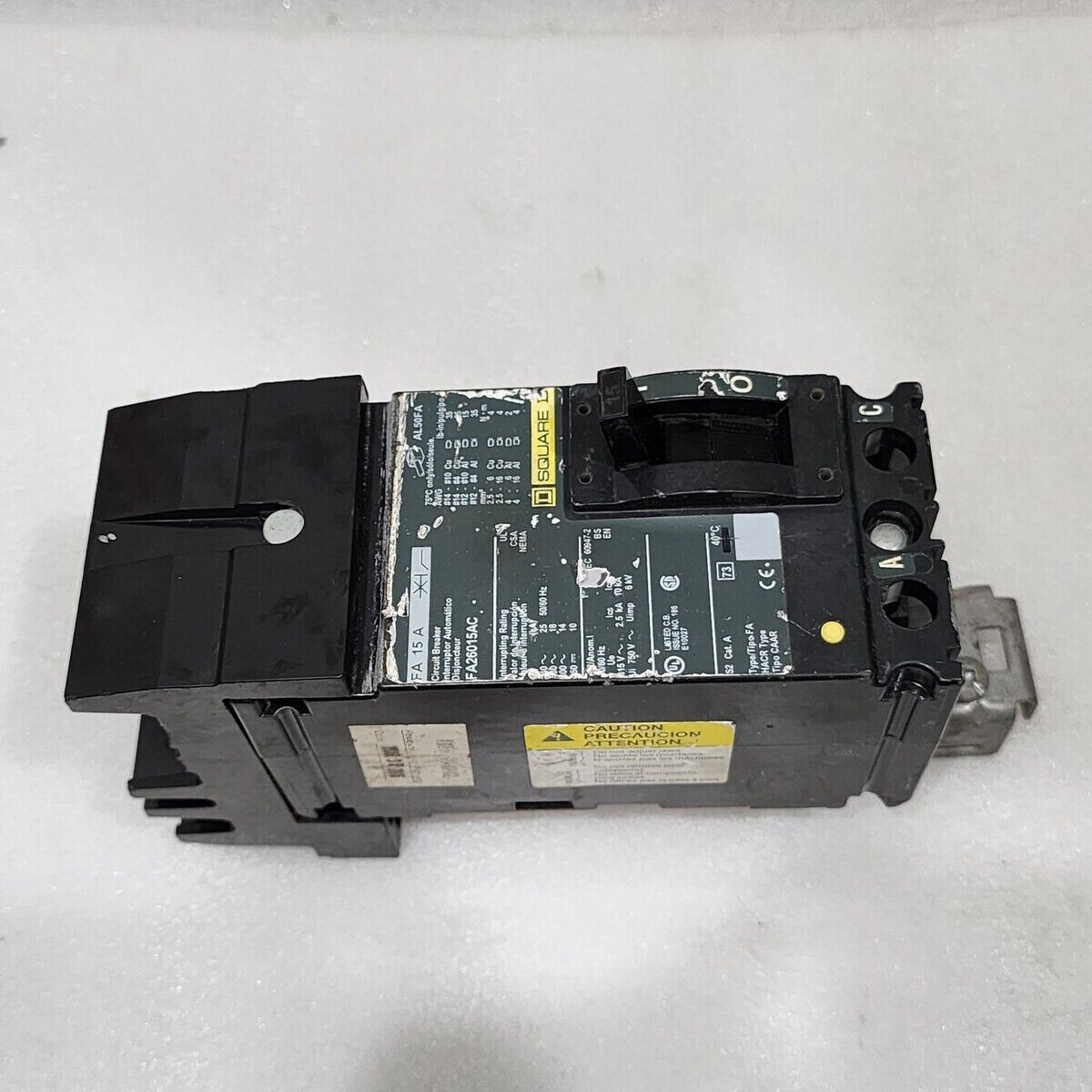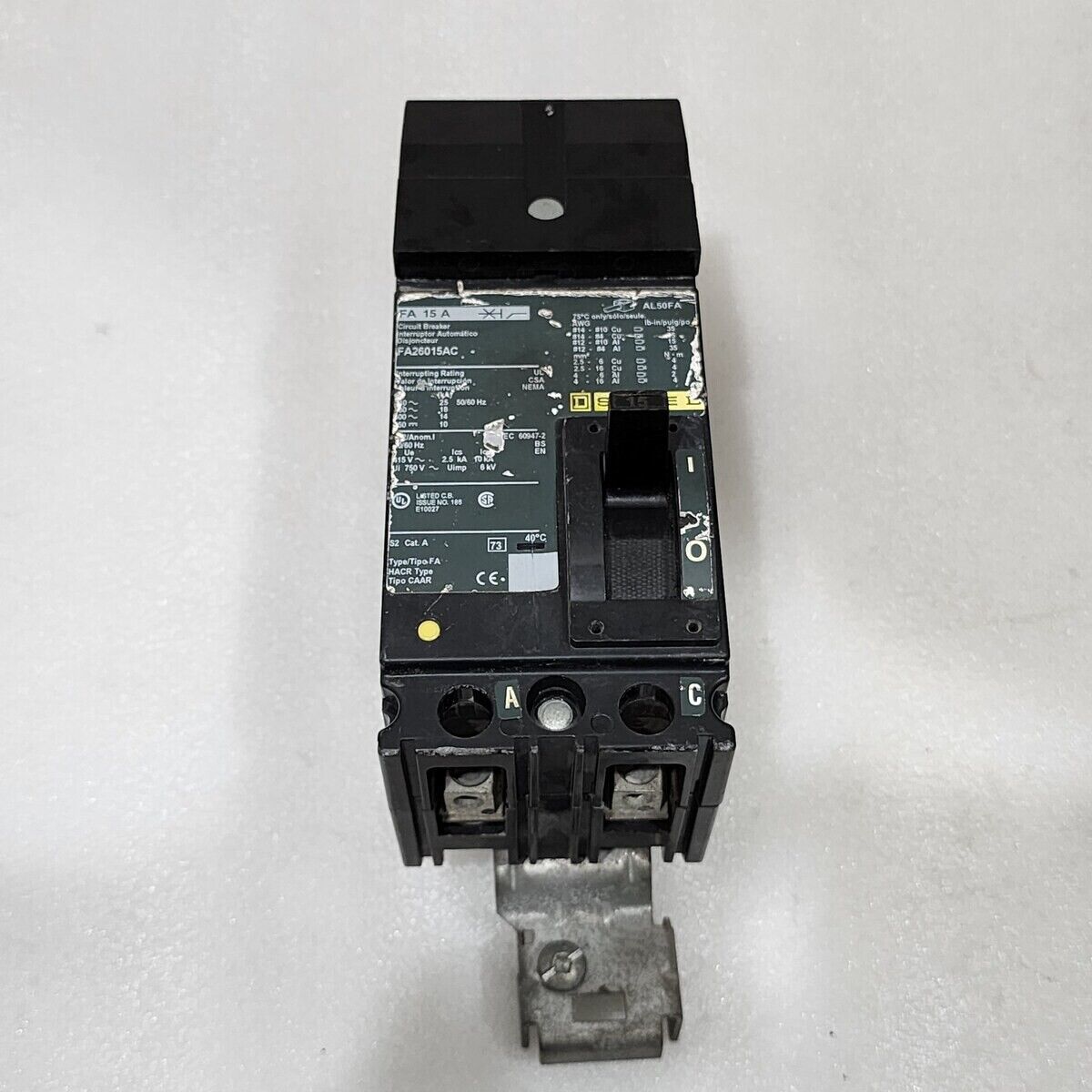 SQUARE D FA 15 A CIRCUIT BREAKER 15A FA26015AC FA/LA MOLDED CASE CIRCUIT BREAKER